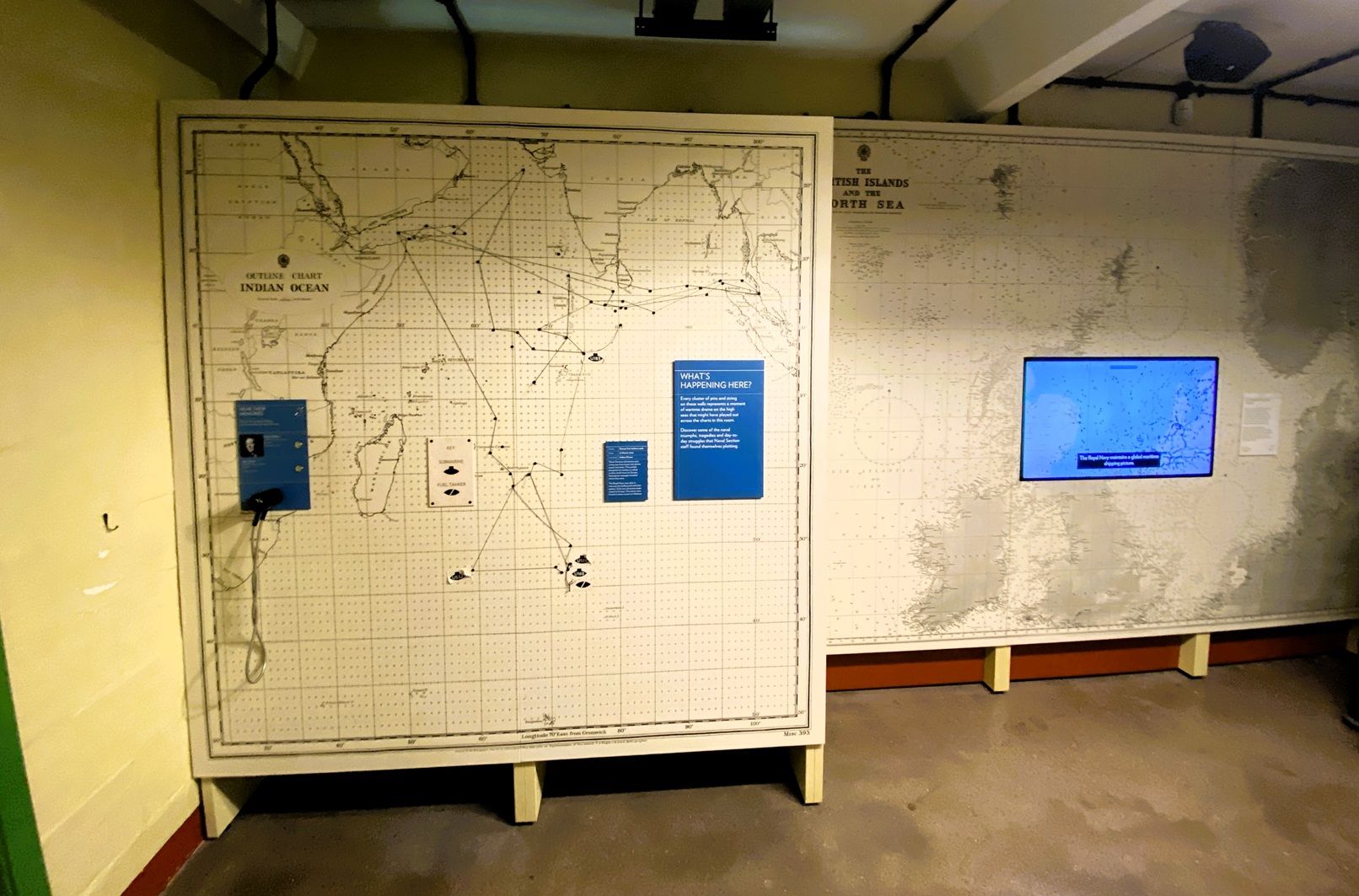 Portions of Block A have been restored and readapted for exhibitions. This room featured a large wall map of the English Channel and surrounding waters, used to track Allied and enemy ship movements during operations such as D-Day.