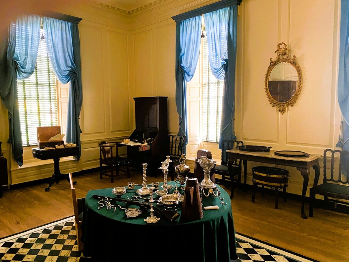 Located on the right of the Entrance Hall is the Parlor which was used for receiving guests and hosting intimate gatherings. It was a less formal place, but still central to elite hospitality serving as a setting for polite conversation, tea, and informal diplomacy. It was where the governor or his family might entertain visitors in a more relaxed yet elegant environment. Access to the Parlor marked a guest’s status and their proximity to power.