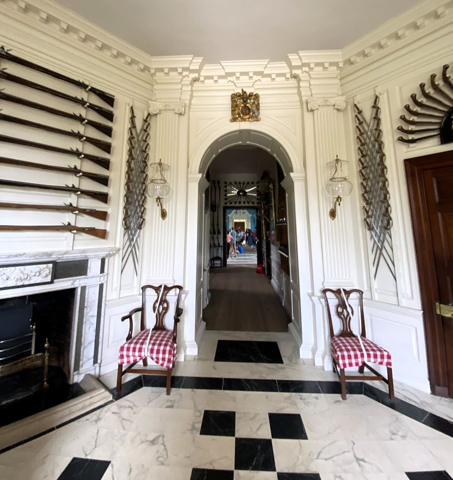 The walls of the entrance displayed over 500 weapons - muskets, swords, pistols, and halberds (a two-handed polearm that features an axe blade topped with a spike) these were arranged in symmetrical, almost artistic patterns. This wasn’t just storage; it was a visual assertion of military strength and royal authority.