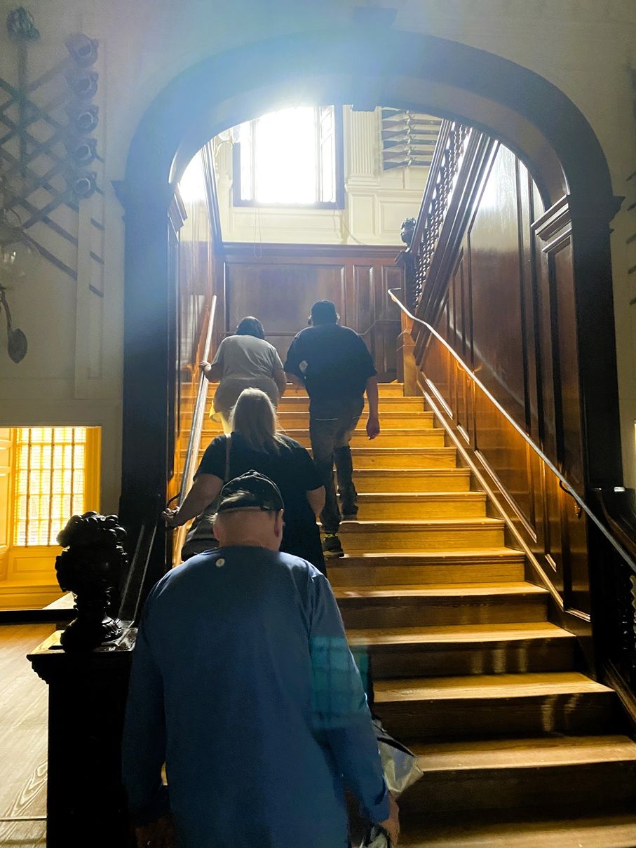 The staircase was a broad, elegant structure that rose in a graceful curve from the entrance hall to the upper floor. The balustrade and newel posts were richly carved, showcasing the skill of colonial artisans and the wealth of the governor’s household.