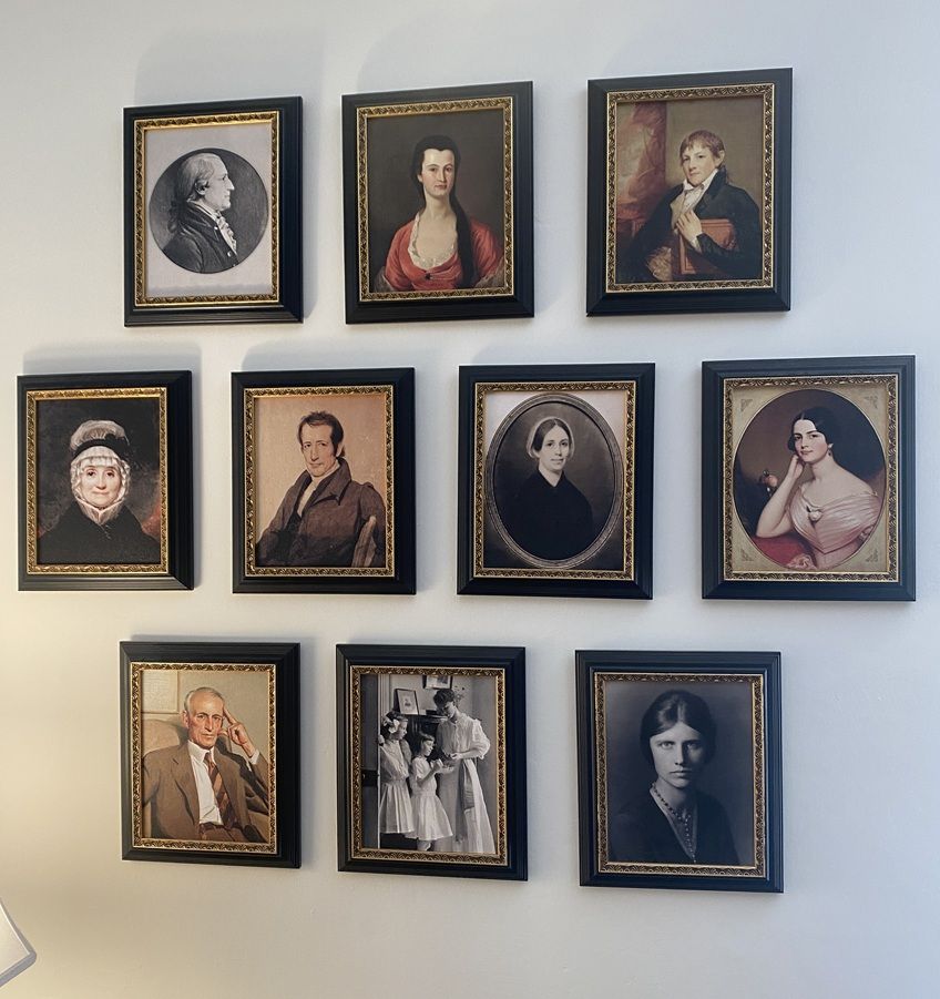 Displayed are a number of portraits relating to Tucker, his second wife, Frances Bland Randolf Tucker and some of their family and descendants.