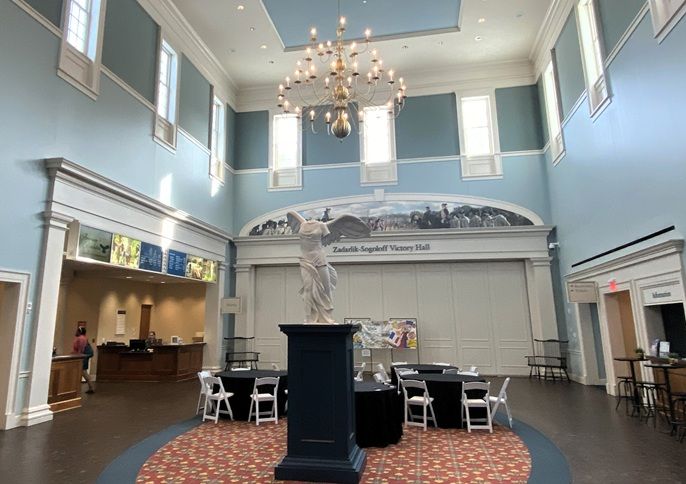 The lobby contains a statue of Nike, the Greek goddess of victory, a figure often associated with triumph in both war and civic achievement; this was chosen for its evocative condition, headless and armless, to reflect the fragility and complexity of victory. The statue’s origin is symbolic rather than archaeological as it was likely commissioned or selected by curators to complement the museum’s narrative strategy.