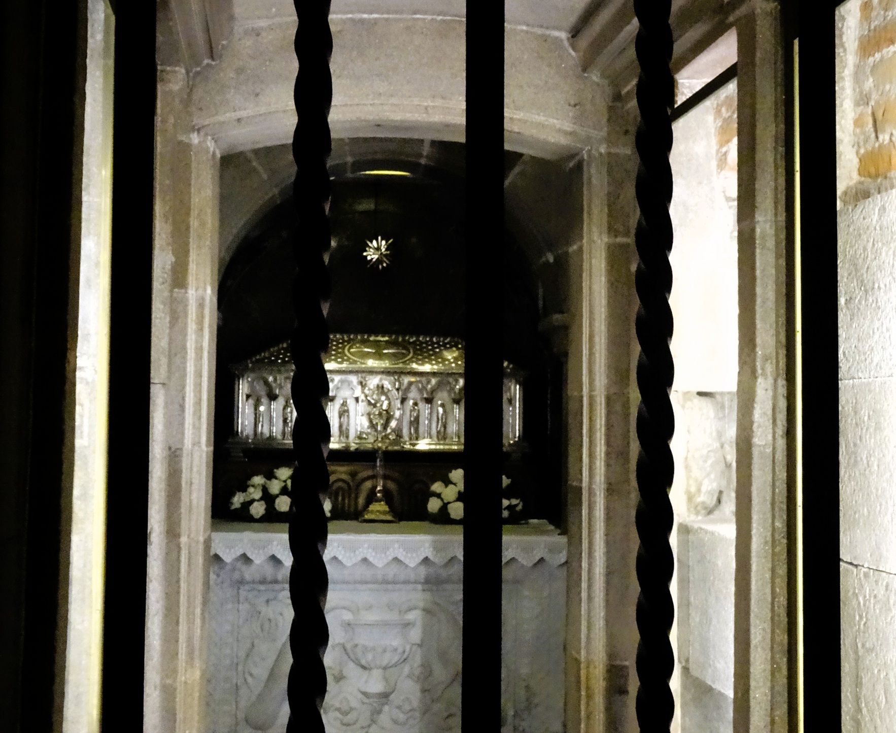 One of the main attractions is the tomb of Saint James, which lies below the high altar in the crypt. This was lost in 1700 until they were found in 1879 during the course of building work. Three skeletons were found which were believed to have been Saint James and his two disciples. The one of Saint James was confirmed by the fact that a fragment of his skull was held by a church in Tuscany which fitted a gap in the skull of one of the skeletons. The remains of the three skeletons of relics of Saint James and his two disciples Saint Theodorus and Saint Athanasius are in a silver casket over a marble altar. The container was made and placed there in 1886.