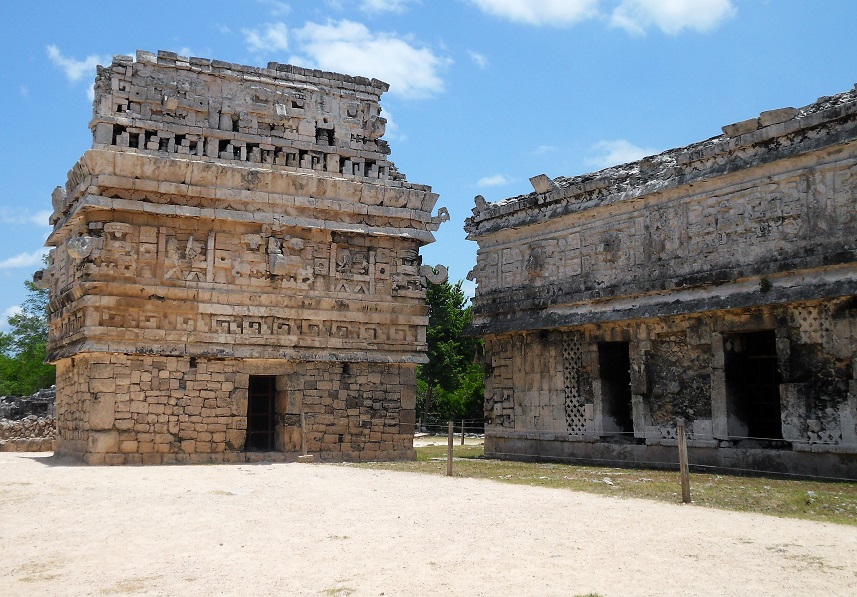 The Nunnery was so named by the Spanish and was in fact a palace complex. To the east is a small temple known as the Church which is decorated with elaborate masks and hieroglyphic texts.