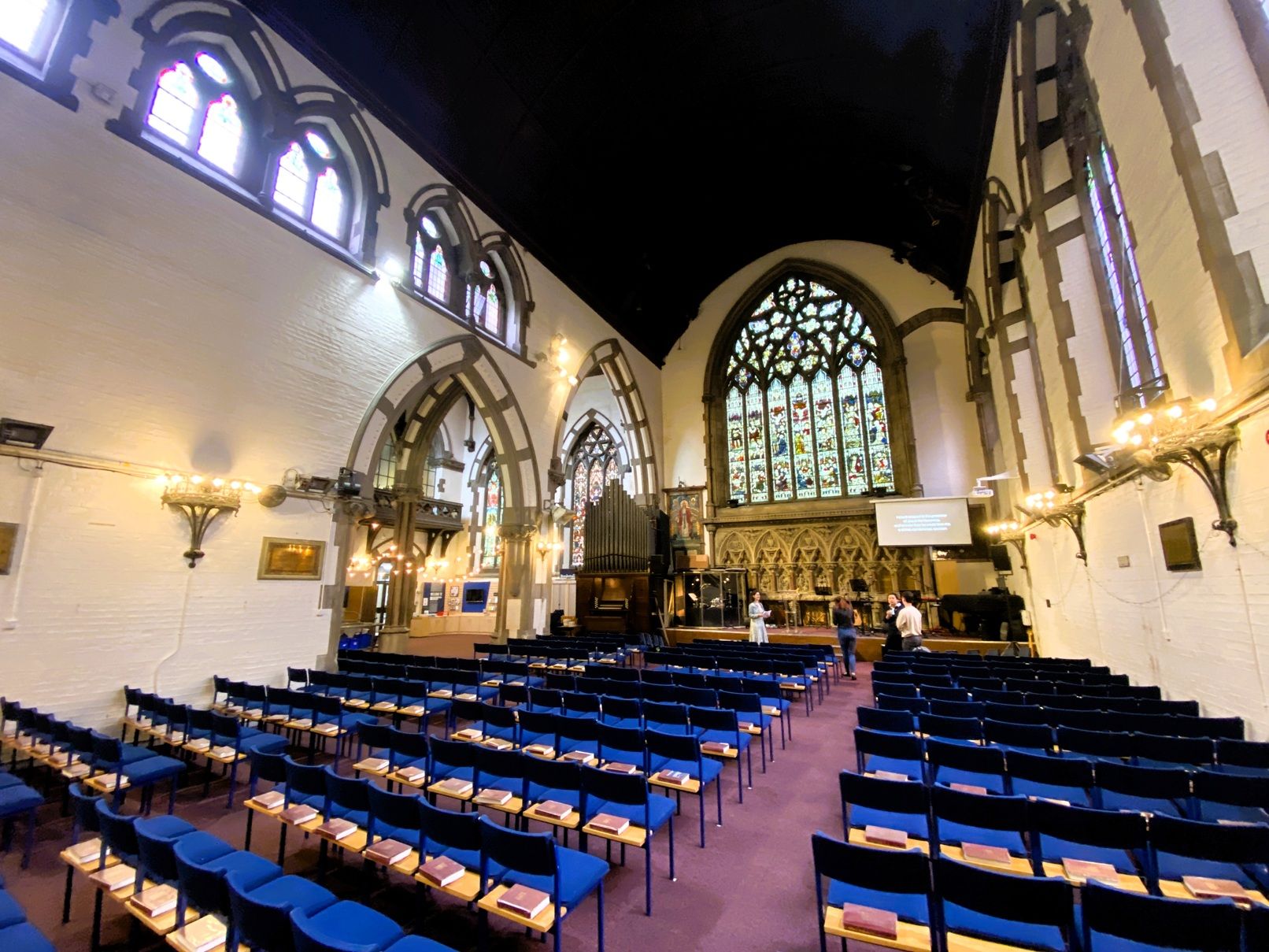 The church no longer has a pulpit as a visual or functional centrepiece, today, the pulpit area has been adapted for flexibility. Instead of a fixed, elevated pulpit, Christ Church Mayfair uses a raised platform or lectern, allowing for clear sightlines and acoustics, integrated with music and multimedia. This shift reflects the church’s emphasis on expository preaching, accessibility, and engagement - hallmarks of evangelical worship which prioritises clarity and accessibility.