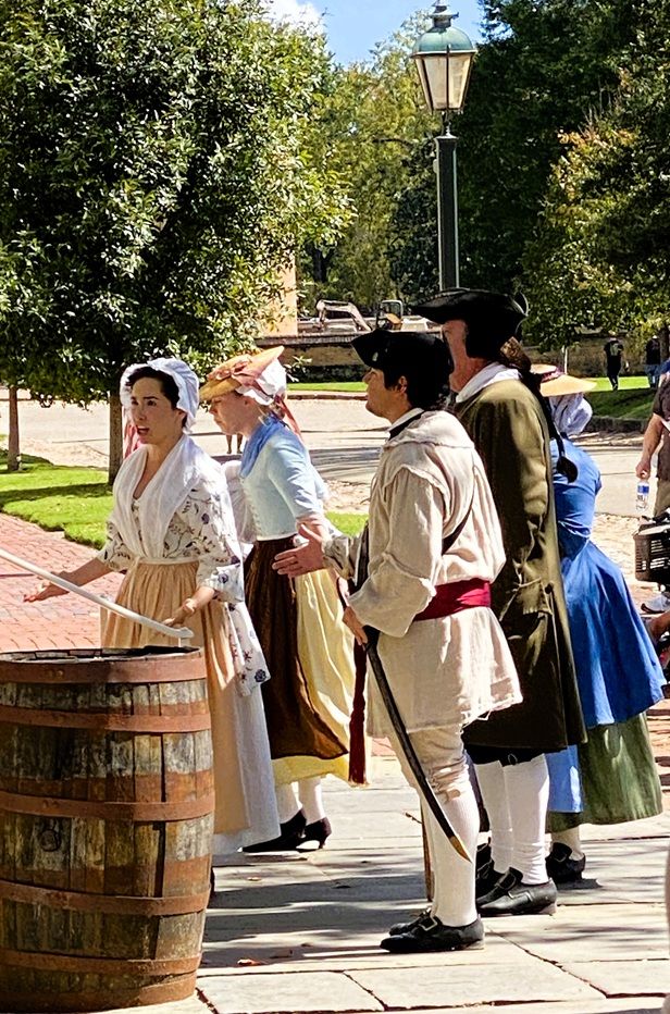 To be seen around the site are re-enactments of the events that led to the course of action taken by the ordinary people. These people are all dressed in clothing spun, died, and sewn using 18th century methods. One example of these events is that which took place outside the Raleigh Tavern.