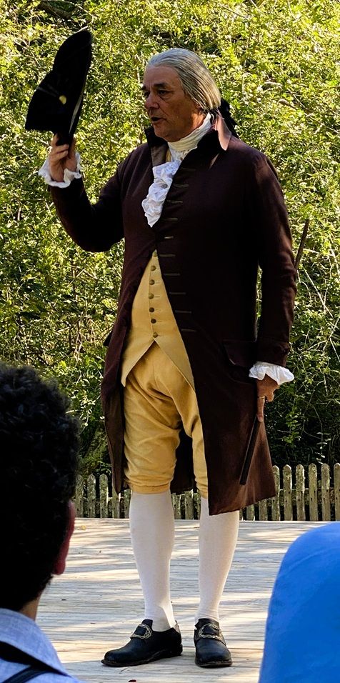 Costumed actors relive some of the historical events that took place there in its history, providing information regarding details of the events and the people. One of the locations for this can be seen at the stage located at the rear of the Charlton Coffeehouse near the Capitol. One such performance is with George Washington discussing events and his place in them.
