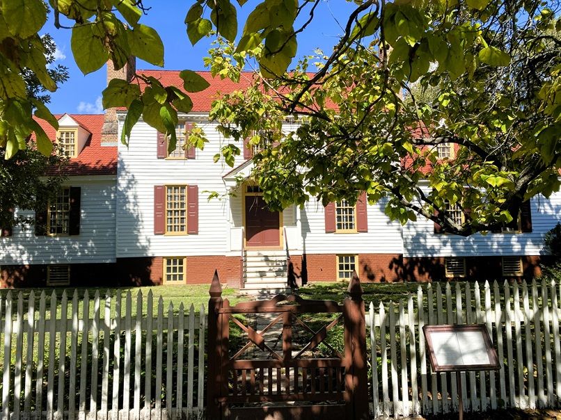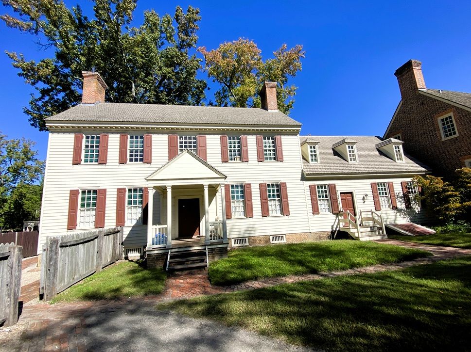 At the side of the Palace Green are a number of prominent houses. The George Wythe House, built in the 1750s by Richard Taliaferro, is a Georgian-style residence that served as the home of George Wythe who was a signer of the Declaration of Independence and mentor to Thomas Jefferson. Known for its architectural integrity and Enlightenment-era refinement, the house features symmetrical brickwork, modillion cornices, and original outbuildings. It played a strategic role during the Revolutionary War as George Washington’s headquarters before the Siege of Yorktown. Today, it stands as a testament to Wythe’s legal legacy, domestic life, and the layered history of enslaved labour and civic transformation.