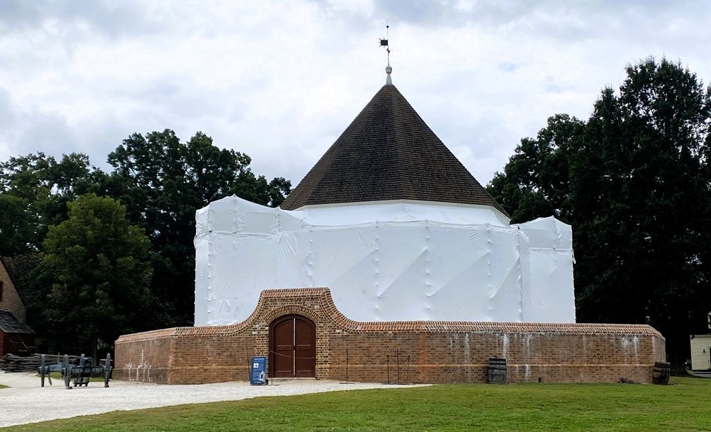 Across the street, close to Palace Green is the Powder Magazine which is an octagonal brick structure built in 1715 to store arms and ammunition for the Virginia colony. It played a pivotal role in early Revolutionary tensions when British Governor Lord Dunmore ordered the removal of gunpowder from the magazine on April 21, 1775, triggering the Gunpowder Incident when local militia, led by figures like Patrick Henry, viewed this as a hostile act and mobilized in protest, fearing disarmament and suppression. The Magazine has been restored to reflect its 18th-century appearance. At the time of the authors visit it was undergoing addition restoration work with its external walls covered.