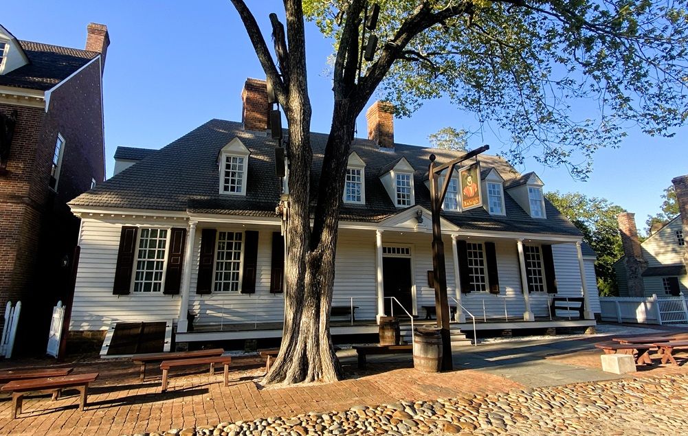 Located at 101 South Waller Street, near to the Capitol, the Christiana Campbell’s Tavern, was established in the 1770s by entrepreneur Christiana Burdett Campbell. Christiana Campbell was born around 1723 and learned the tavern trade from her father, John Burdett, who ran an inn near the Capitol. After her husband’s death in 1752, she returned to Williamsburg and began operating taverns at various rented locations. By 1771, she had moved her business to two lots east of the Capitol, and by 1774 owned them outright. Her tavern became known for its genteel accommodations and seafood, attracting guests like George Washington, Thomas Jefferson, and members of Virginia’s Congress. In 1859 the original tavern burned down, but Colonial Williamsburg reconstructed it based on historical records in 1956. Today, the tavern provides a historically immersive experience with candlelit rooms, and servers in period dress. With 18th-century-inspired dishes it offers a historically inspired dining experience.