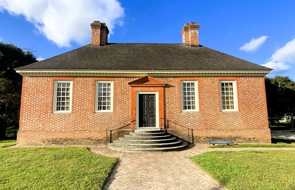 To the side of the Capitol Building is the Secretary’s Office. This was built in 1748 and served as the administrative hub for Virginia’s colonial government, safeguarding official records and training clerks in legal and bureaucratic procedures. Its refined Georgian architecture - with gauged brickwork and a rare king-post truss - mirrored the civic gravitas of the colony’s legal institutions. Constructed after the Capitol fire of 1747, it embodied the resilience and continuity of colonial governance. Restored in the mid-20th century, the building remains a testament to the infrastructure that upheld British authority and later supported revolutionary transformation.