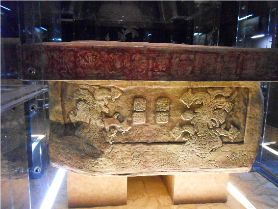 In 1994 a door was found that led to an underground temple, with three rooms. In the middle room was a sarcophagus which was painted with cinnabar, an ore of mercury that is red in colour. Inside the sarcophagus were the remains of a woman and she became known as the Red Queen. The sarcophagus is still there and can still be seen. There were no inscriptions to identify the woman, but scientific investigations indicate that she may have been Pakal’s wife, Sock Boor How.