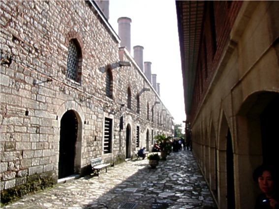 The Gate of Salutation with its two large octagonal pointed towers leads into the Second Courtyard. Richly decorated in the upper part with religious inscriptions and monograms of sultans the gate dates at least to the 1540’s. Entrance through the gate was for officials and foreign dignitaries only. Through the gate is the Second Courtyard or Divan Square which is surrounded by the former palace hospital, bakery, stables, the imperial harem and Divan (council of state) and the kitchens. The Second Courtyard was where the sultan would dispense justice and hold audiences.