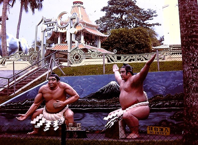 As visitors move further into the park, they come across brightly painted sumo wrestler statues. These figures are not part of Chinese mythology but reflect the Aw brothers’ later vision of creating a broader “Asian cultural garden.” Their presence adds to the park’s eclectic mix of cultures and styles.