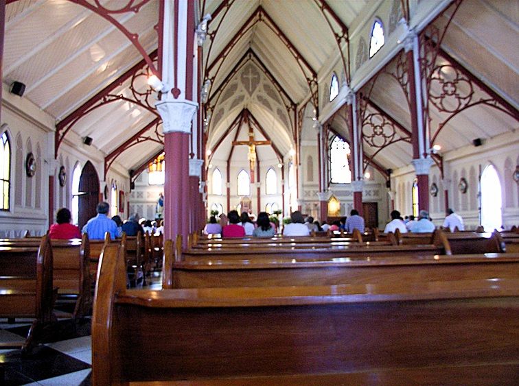 Passing through the doorway visitors enter into a single nave with wooden pews. The interior has no side aisles, chapels, or transepts. The narrowness of the interior width gives the space a sense of closeness and community, a layout that reinforces the building’s role as a parish cathedral rather than a monumental basilica.